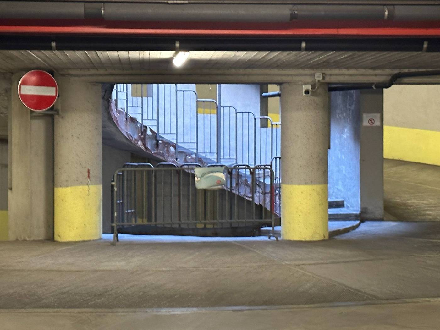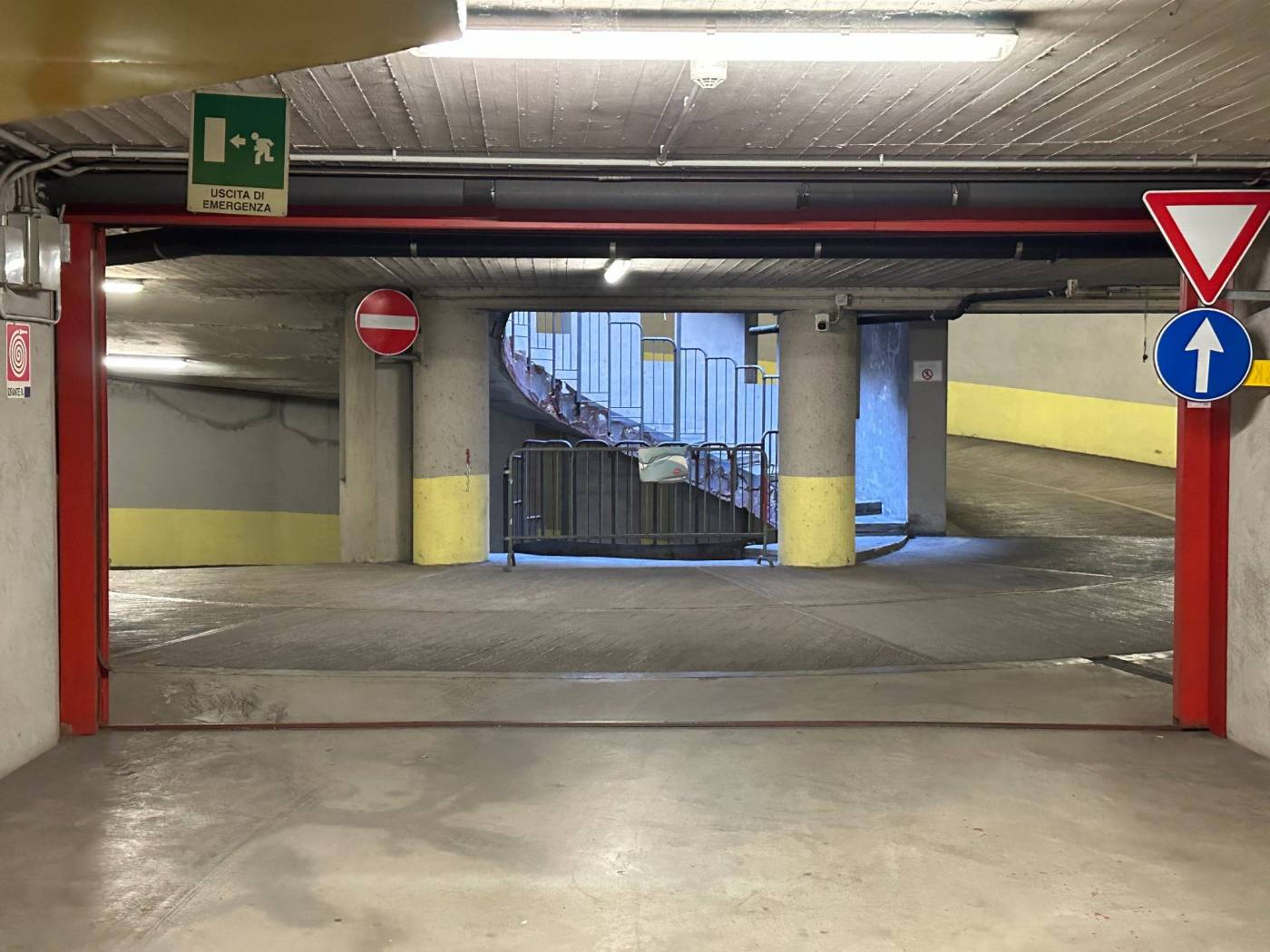 - Situato all'interno di un parcheggio coperto su più piani sotterranei.